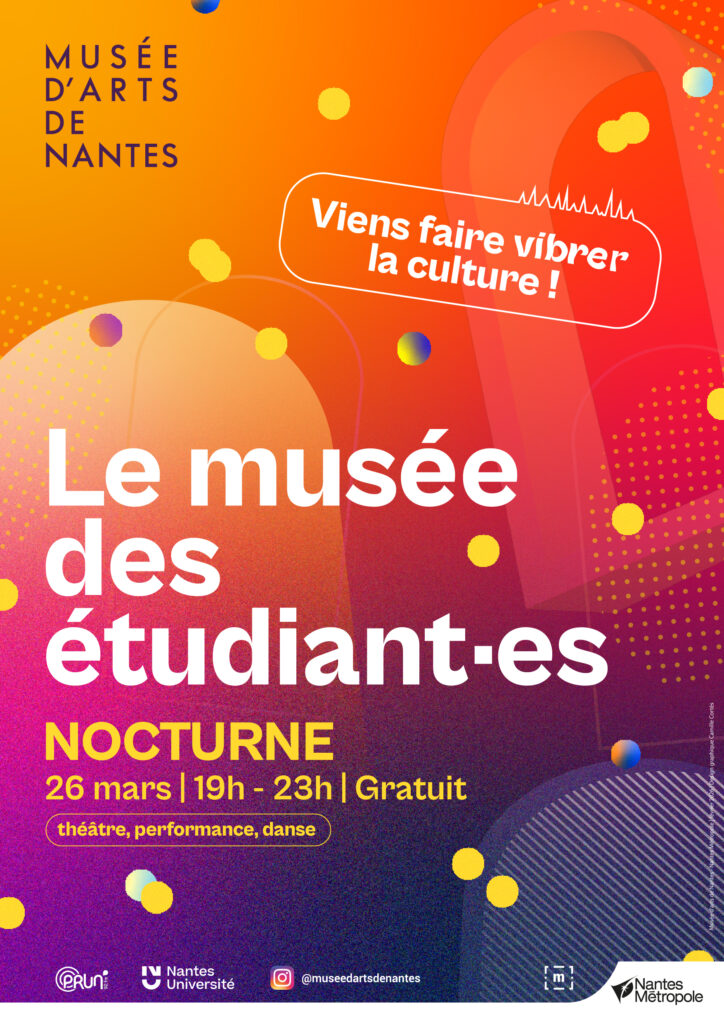 Jeudi 26 mars, le Musée d’arts donne à nouveau rendez-vous aux étudiantes et aux étudiants lors d’une nocturne exceptionnelle de 19h à 23h. À cette occasion, ces jeunes talents investissent le Palais et le Cube pour offrir au public une soirée immersive, rythmée par des performances musicales, chorégraphiques, théâtrales et des actions de médiation.