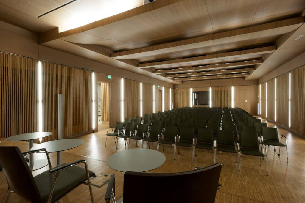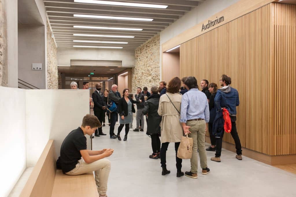 Junto al auditorio, el Foyer puede acoger sus desayunos, cócteles o aperitivos para recibir cómodamente a sus invitados en el marco de sus reuniones en el auditorio.